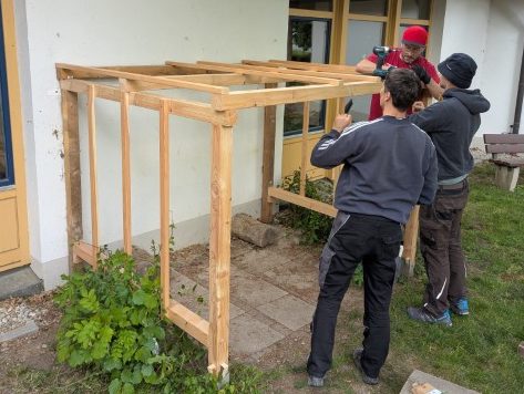 Die Beteiligung der Eltern ist wichtiger Bestandteil in unserem Kindergartenalltag. Ob bei den Laubaktionen im Herbst, diversen Bau- und Reinigungsprojekten oder auch natürlich Spielen und Singen mit den Kindern. Hier wurde von einigen Papas unsere Laube im Garten erneuert.