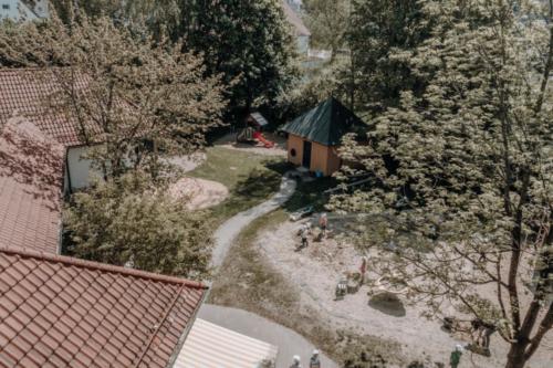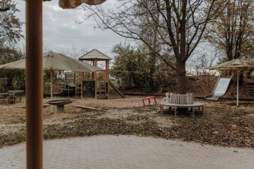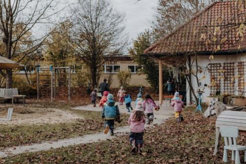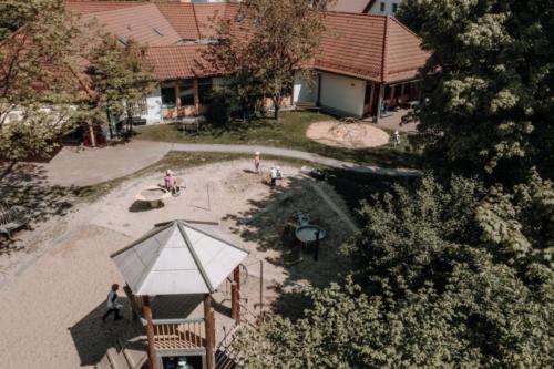 Unsere Gartenanlage lädt die Kinder zum Spielen und Toben ein. Jede Gruppe verfügt dabei über eine eigene Terrasse.