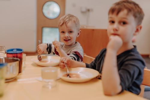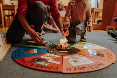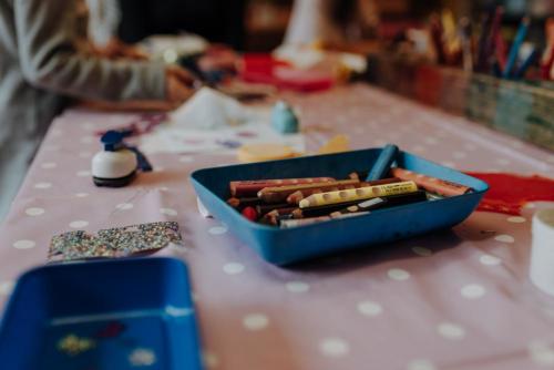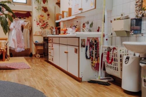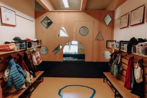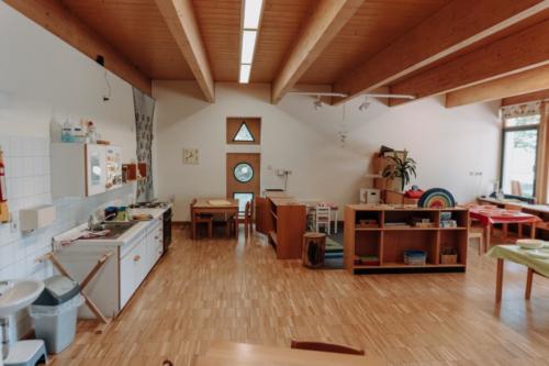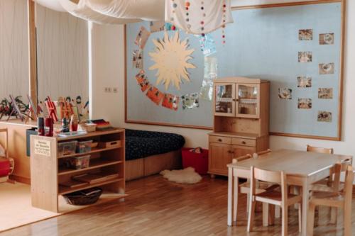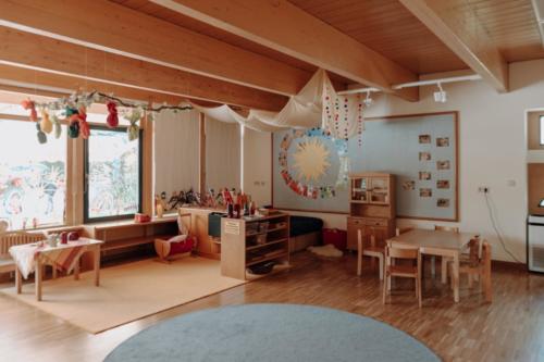 - Zwei große Kindergartengruppenräume mit jeweils angrenzendem Spiel- bzw. Bastelraum sowie eigener Garderobe.