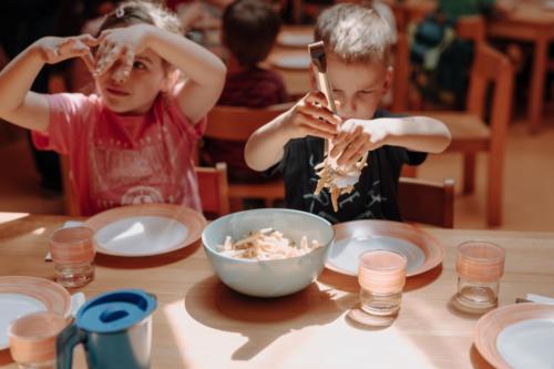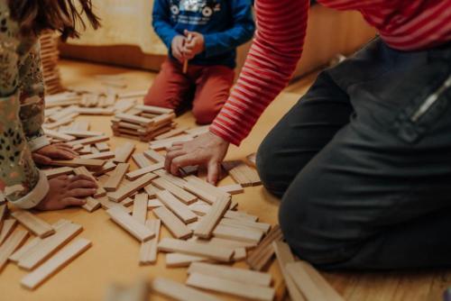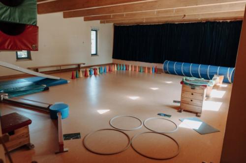 - große Turnhalle (aktuell mit unserer Bewegungsbaustelle, die die Kinder zum Erkunden, Toben und Spielen einlädt)