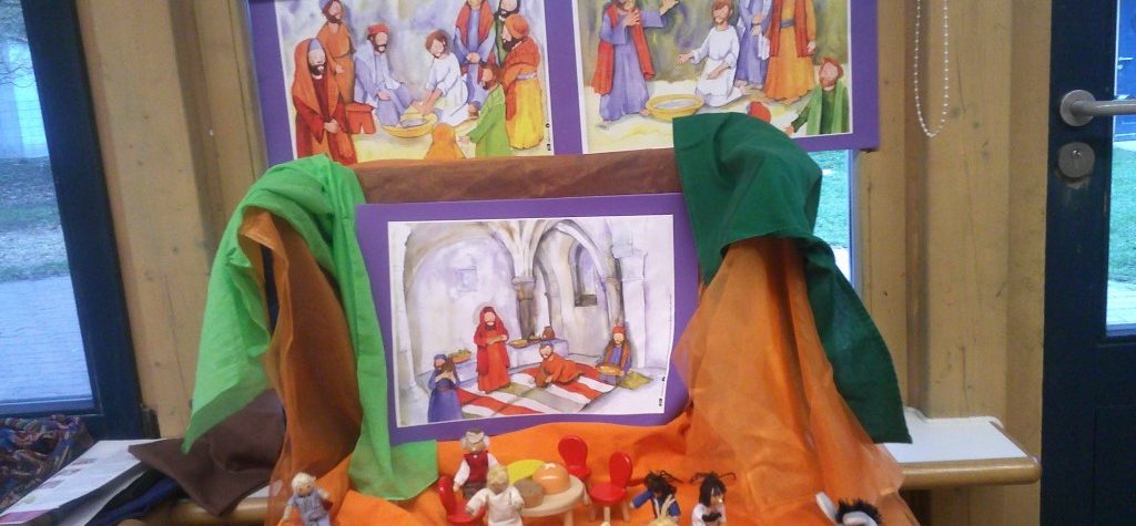 Die letzten Wochen haben sich unsere Kinder ausführlich mit Ostern beschäftigt. Sie haben sich auf den langen Weg mit vielen Stationen begeben. Wir haben Geschichten gehört, Szenen gestellt, viel Gemalt und Gebastelt.